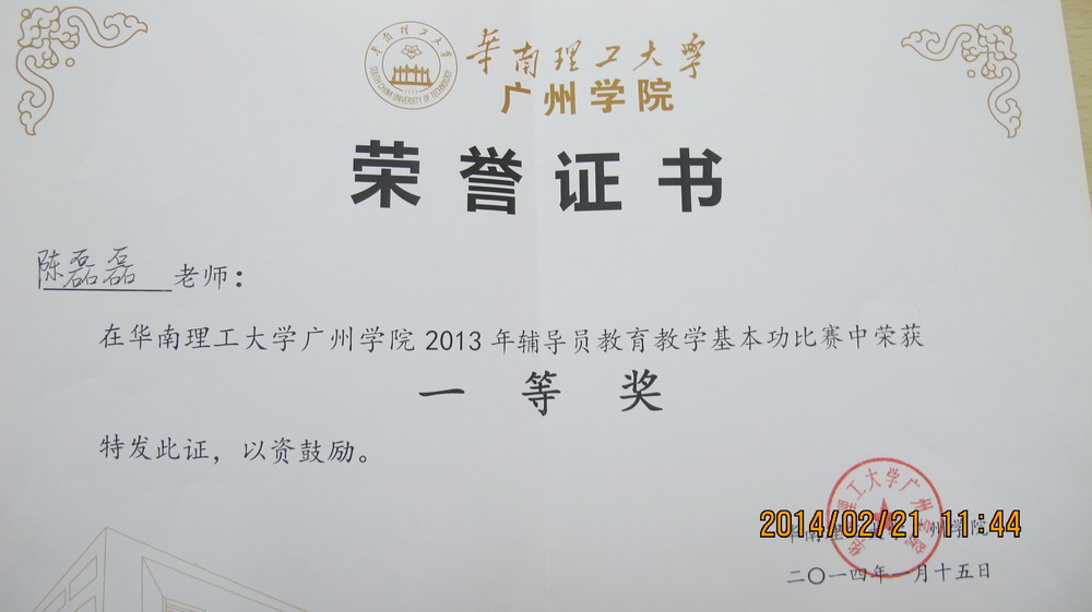 1月15日,由学生工作处主办的2013年辅导员教育教学基本功比赛落下帷幕,我院辅导员陈磊磊老师荣获比赛一等奖。