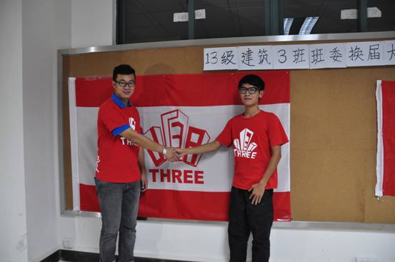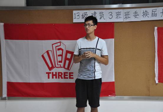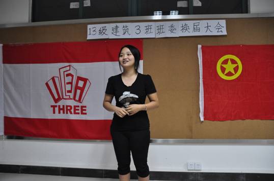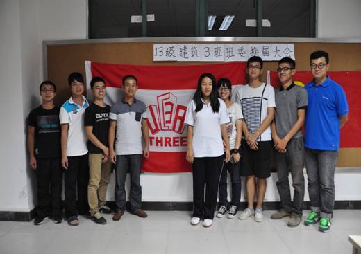 10月10日晚,2013级建筑学3班在A10-407举行了团支部、班委会换届选举会议,班主任刘明洋主持了此次会议。在全班同学的积极配合下,选举气氛十分活跃。同学们积极进行竞选演讲,立志为班级贡献自己的一份力量、为班级服务的真情实感溢于言表,感动了在场的每一位同学。演讲完毕,再由同学们用手中的笔为他们支持的候选人投下神圣的一票。投票结束后再由两位计票员进行收票、计票,最后把统计结果交由班主任公布。最后产生了由陈嘉杰、张金晶、钟淑晶、李健安、潘军航、陈志荣、袁路森组成的新一届团支委、班委。辅导员陈磊磊老师参与了授班旗仪式,班旗由全班同学负责进行设计并在全班范围内进行投票产生,对于班级而言,意义非凡。