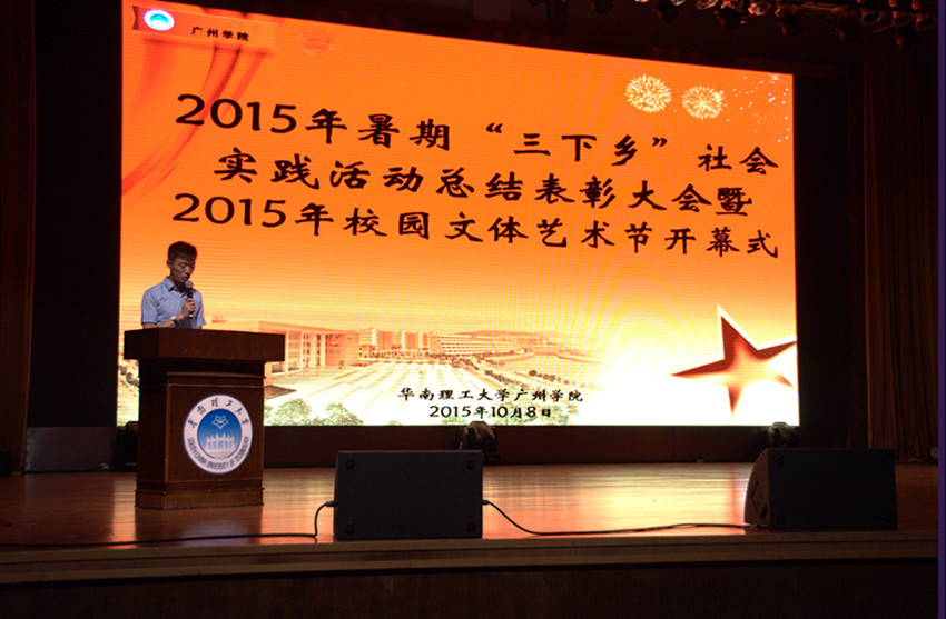 2015年10月8日15时,由共青团华南理工大学广州学院团委学生会主办及承办的暑期“三下乡”社会实践活动总结表彰大会暨2015年校园文体艺术节开幕式在我校学生活动中心隆重举行。