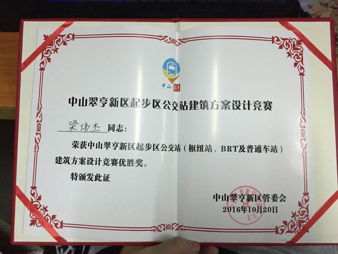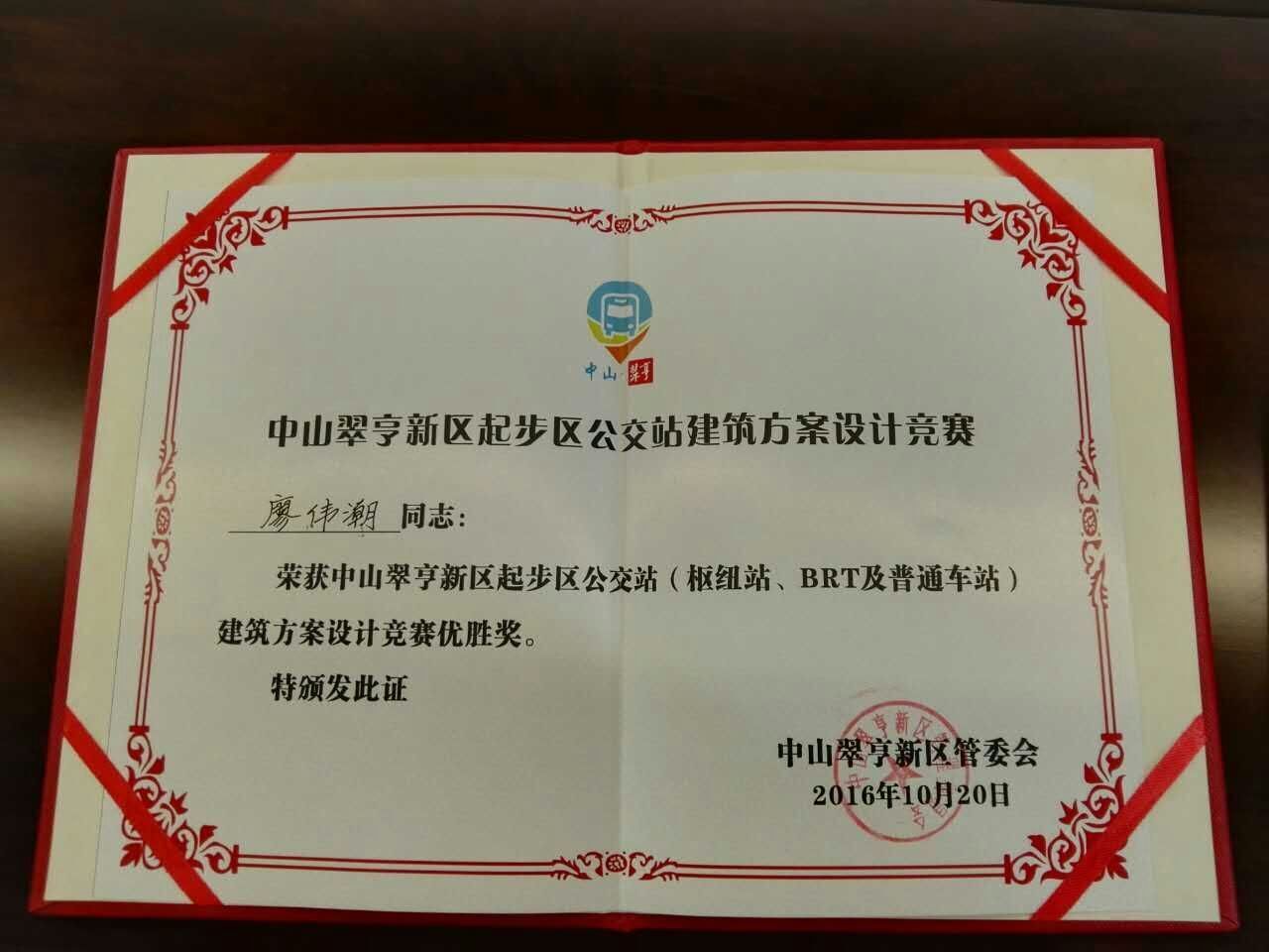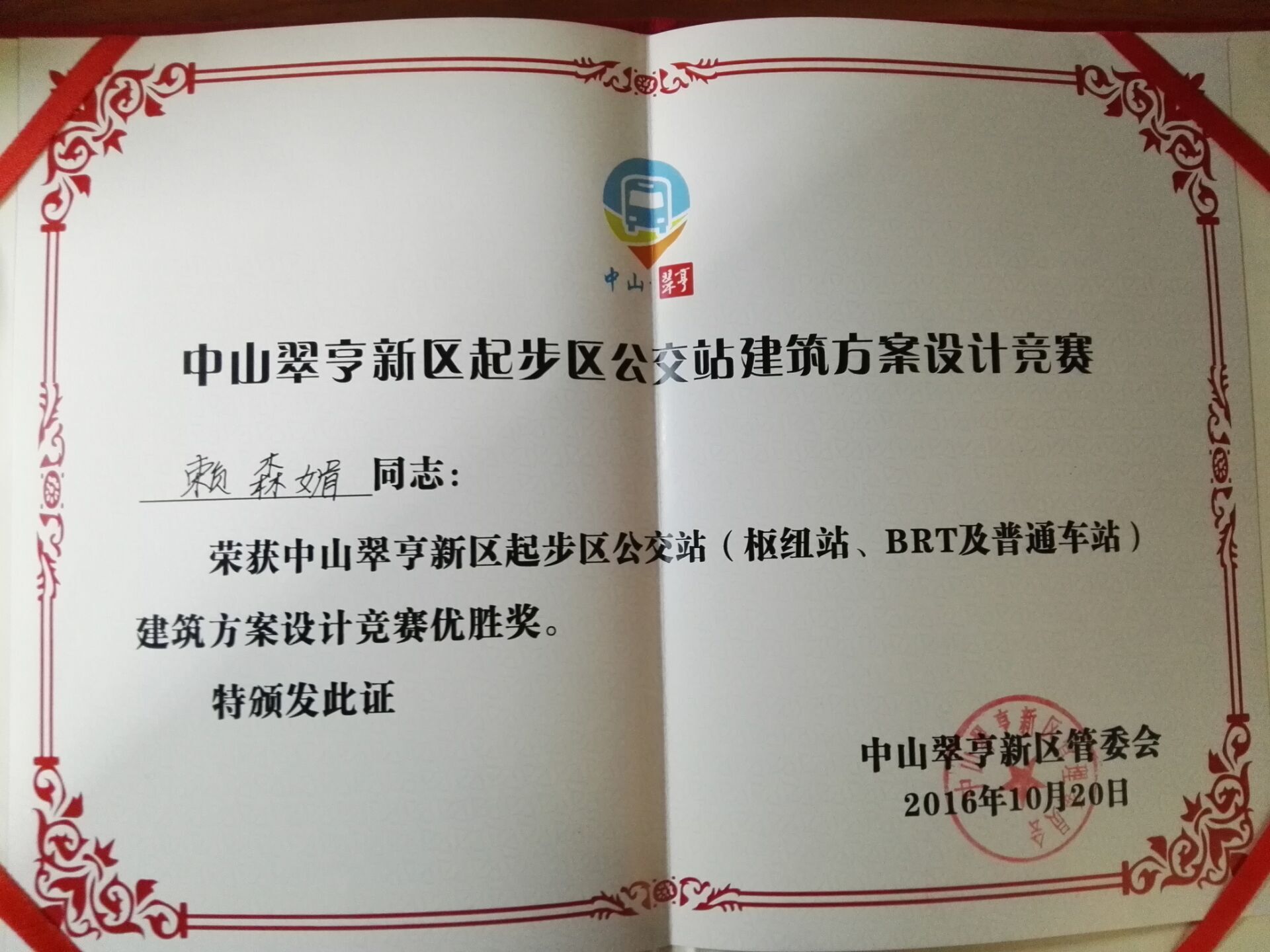 10月,在中山翠亨新区起步区公交站建筑方案设计竞赛中,区文谦指导的学生(赖森媚、廖伟潮、梁伟杰)作品获得竞赛优胜奖。