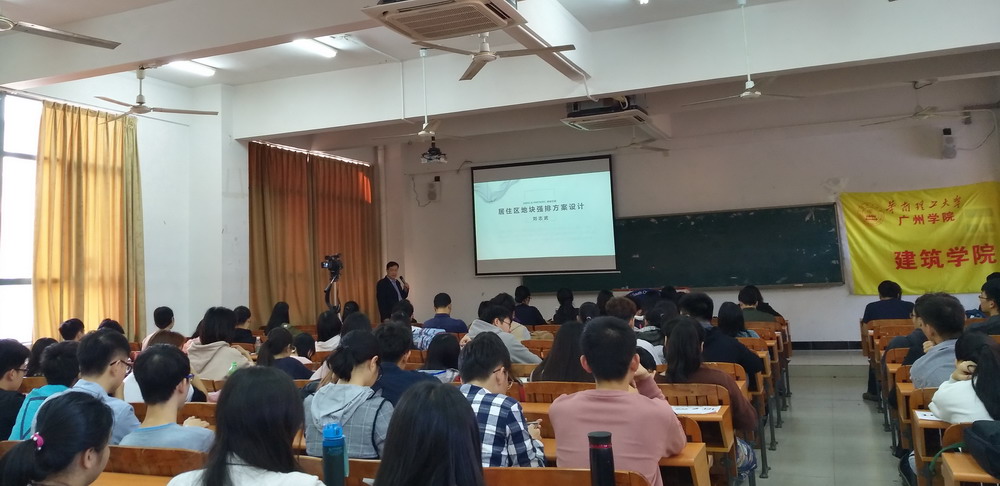 讲座伊始,刘志武向在座师生普及了强排方案设计的概念,讲述了强排方案设计内容,他指出,拿地强排方案设计要按项目要求制作好概念规划设计汇报文本、效果图、CAD总平面图、日照分析图及彩色总平面图等,填写好各项经济技术指标表及甲方投资模型指标表,其中规划及各项指标要在遵循相关法规、技术规范及政府审批意见的前提下,按甲方要求严格执行,在甲方书面确认设计成果前,乙方应积极配合甲方调整规划设计。