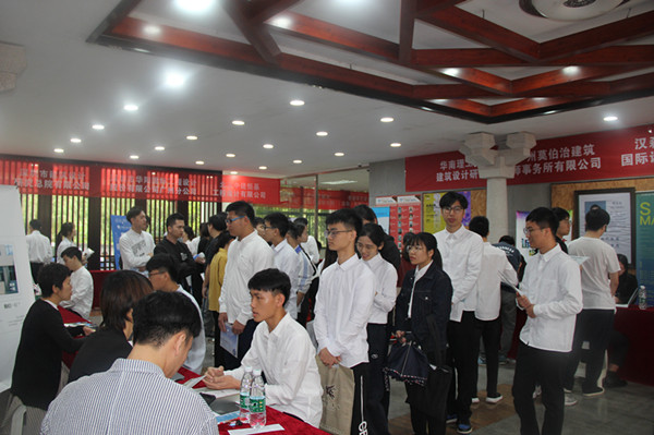招聘企业都很重视本次招聘会,广东省建筑设计研究院深圳分院在现场挂起了对联“清明时节招新生,华广设计好消魂,借问工作何处有,省院向你来招手”,吸引了不少求职者前来应聘;华南理工大学建筑设计研究院派出了10人的招聘团队,设计师林毅表示,参加本次招聘会出乎他的意料,没想到华广建筑学子整体素质这么高,学生面试整体都比较好,已经与多名同学确定了初步意向,同时他也指出,部分学生对自己的职业规划还不够明确,希望学院能加强这方面的指导;广东省重工建筑设计研究院有限公司主管苏东杰对求职学生赞不绝口,他说,看了大部分学生设计的作品和作品集,学生在设计软件、手绘等方面的专业基本功扎实,我们招人的目标很明确,就是要华广建筑学院毕业的学生。