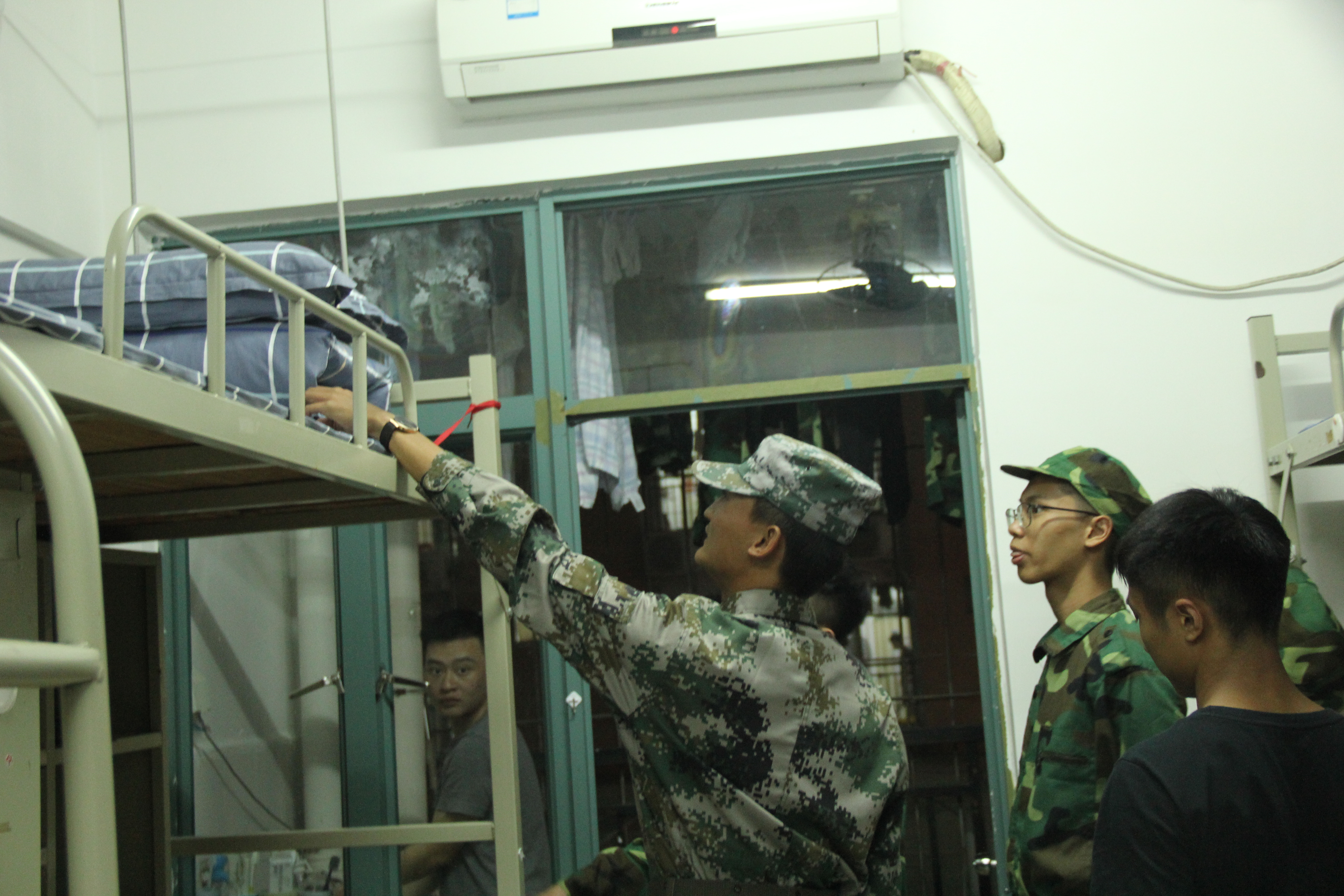 经过教官们先后在操场和宿舍对新生宿舍内务进行教学, 11月10号晚教官来检查军训学生的学习成果啦!