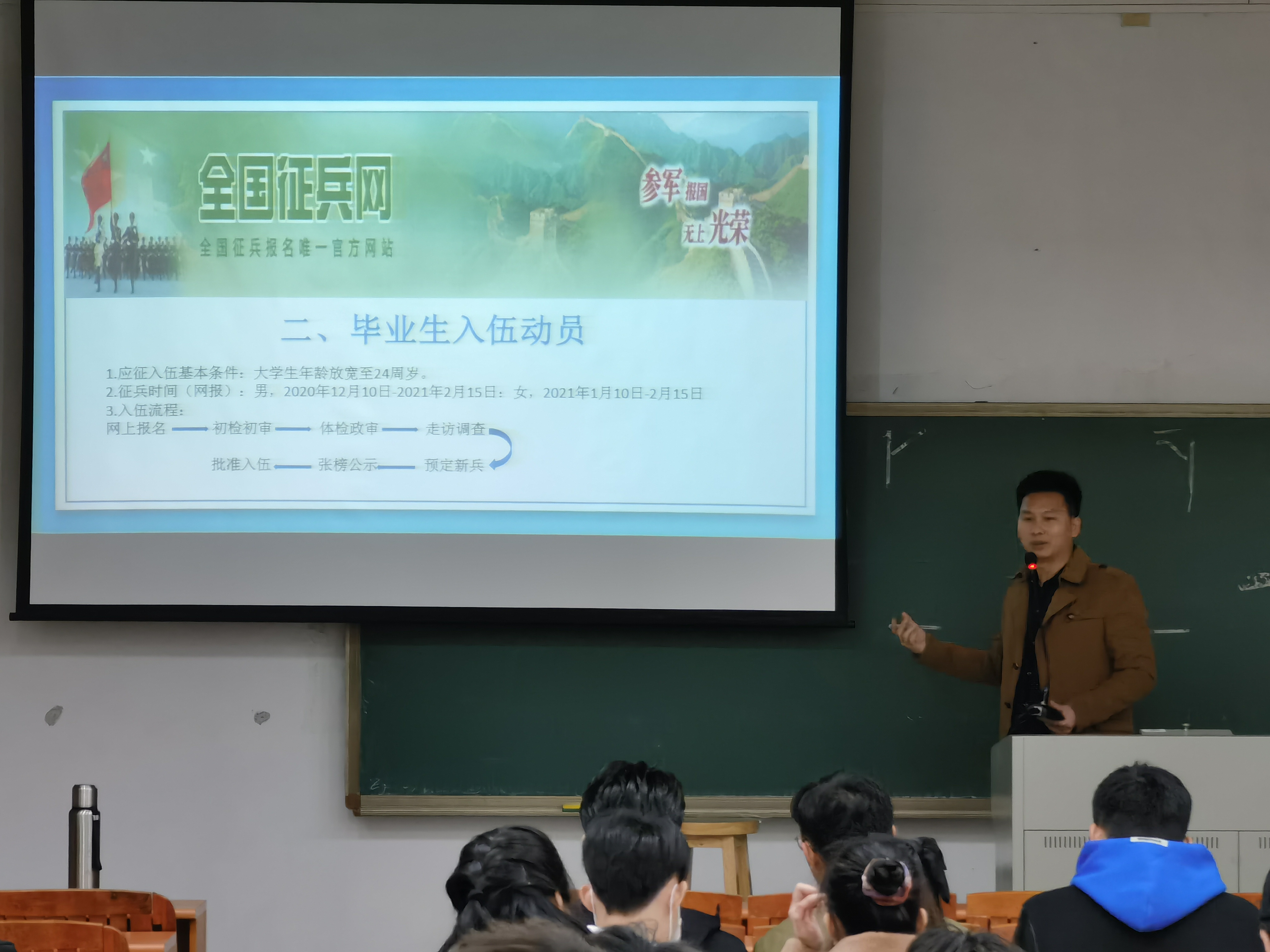 会议期间,刘建斌分析了当前就业形式,并指出学生毕业后基本就业方向,对大学生应征入伍、基层就业等相关政策等方面进行了详细介绍,鼓励同学们走向基层、走向部队,走到国家最需要的地方去。通过耐心的指导,丰富了学生的就业选择,也帮助了毕业生进一步明确未来方向,加强自我认知,做好职业生涯规划。