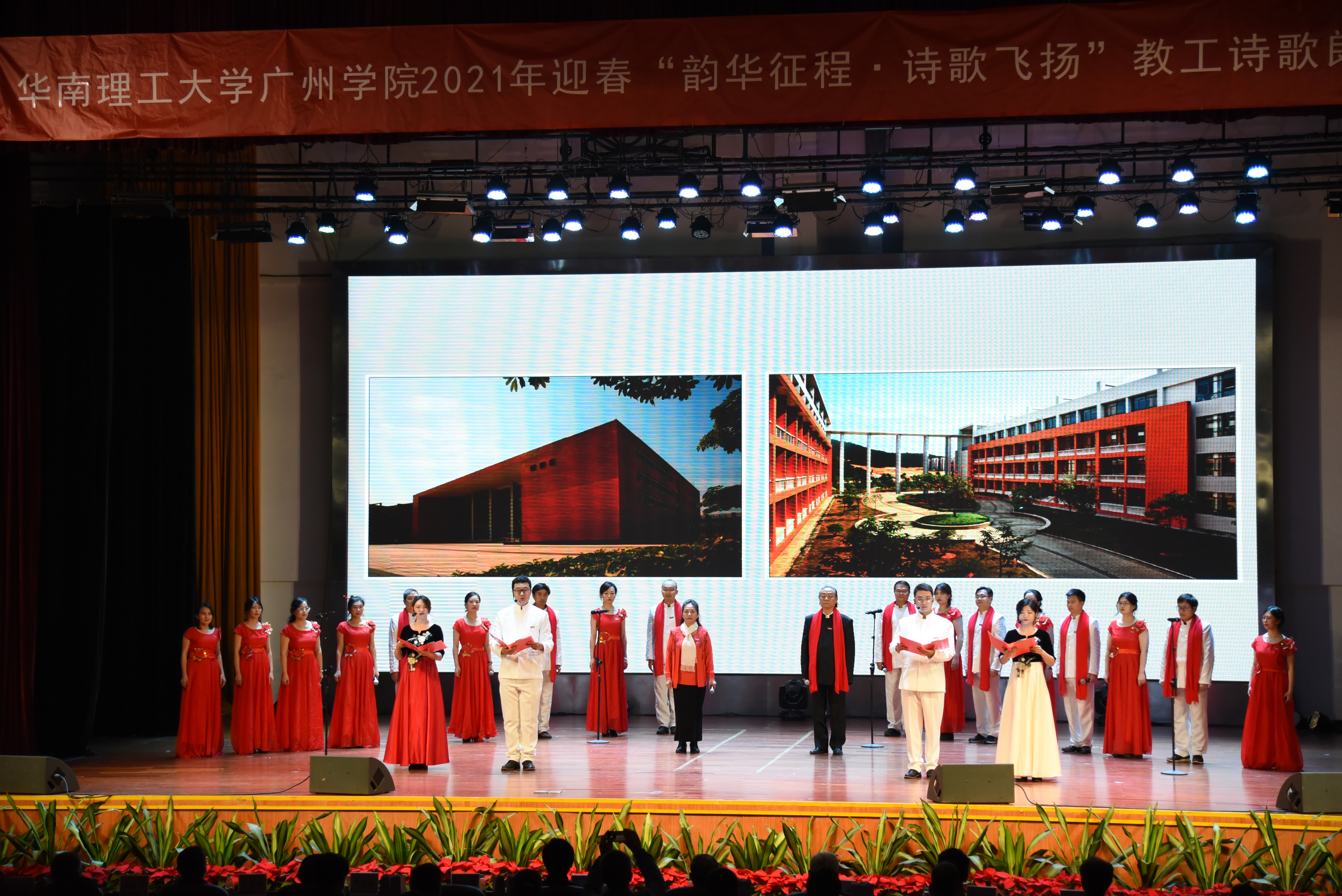 12月24日下午,学校2021年迎春“韵华征程·诗歌飞扬”教工诗歌朗诵汇演在学校学生活动中心隆重举行。建筑学院由院长赵红红、副院长张莉领衔的原创诗朗诵节目“不忘初心、再创辉煌”用精彩的表现赢得了评委和观众的认可,获得了第一名。