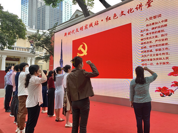 建筑学院全体教工在学院党支部书记张莉的带领下参观了广州起义纪念馆内的文物、照片及影像资料,详细了解广州起义的历史背景、爆发的经过及其历史意义,回顾了中国共产党的革命历程,深刻感受到广州起义领导人张太雷等中国共产党人前赴后继、舍生忘死的革命精神,领略了革命先烈的奋勇拼搏、无畏艰难的开创精神。在广州起义纪念馆的展览馆前,全体党员面对鲜红的党旗,举起右手,握紧拳头,庄严宣誓,重温入党宣誓时的庄严承诺和坚定决心,一句句铿锵有力的誓词,让大家的心灵再次接受洗礼。张莉要求全体教工要认真学习党史,通过了解先烈英勇奉献的英雄事迹,继承和发扬革命先烈的优良品质和光荣传统,提升责任感和使命感,要不忘初心,立足本职,扎实工作,为院校发展做出贡献,以实际行动向建党一百周年献礼。