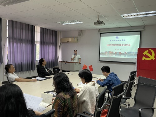 为进一步加强学风建设,提高人才培养质量,10月21日下午,建筑学院在A10-207召开学风建设动员会,院长赵红红、书记钟育雄、院长助理朵朵等全体教工参加了会议,会议由钟育雄主持。