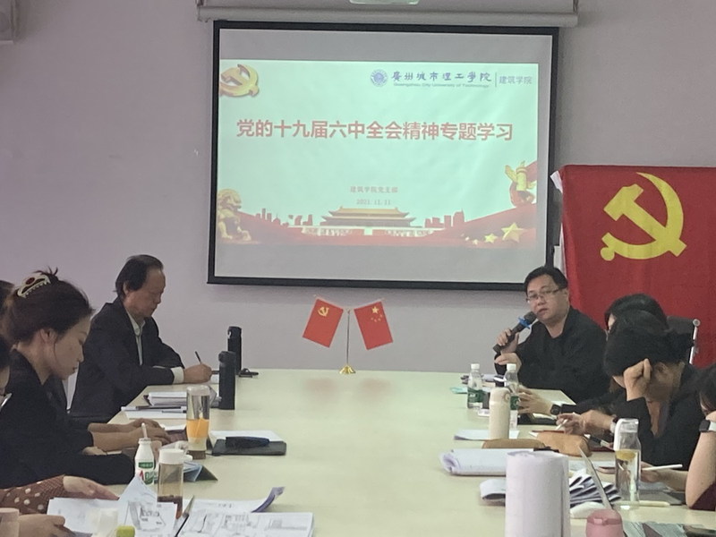 11月11日下午,建筑学院在A10-207召开全体教工会,对学习贯彻十九届六中全会精神进行动员,会议由学院书记钟育雄主持。钟育雄从十九届六中全会召开背景,党的百年奋斗的重大成就,党的百年奋斗的历史经验,实现第二个百年奋斗目标四个方面阐述解读了十九届六中全会精神,钟育雄强调,在建党百年之际,党中央召开六中全会,全面总结党的百年奋斗重大成就和历史经验,是郑重的历史性、战略性决策,体现了我们党重视和善于运用历史规律的高度政治自觉,体现了我们党牢记初心使命、继往开来的自信和担当,全院师生要迅速把思想和行动统一到全会精神上来,要把学习贯彻十九届六中全会精神同做好学院当前各项工作紧密结合起来,以实际工作成果来检验学习贯彻成效。全体教工进一步提高了政治站位,纷纷表示要把学习党的十九届六中全会精神当作今后一段时期的首要政治任务,切实学懂弄通做实。