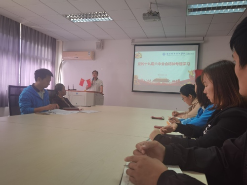 11月12日上午10时,中共中央举行新闻发布会,介绍党的十九届六中全会精神,院长赵红红、书记钟育雄及部分无教学任务的教工观看了发布会,学习会议精神。