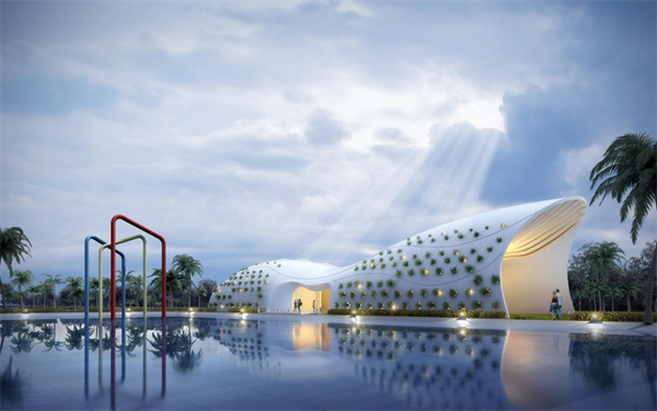 《漂浮在水面的白玉兰——东莞市政广场五号星级公厕建筑设计》效果图(梁光勇 提供)