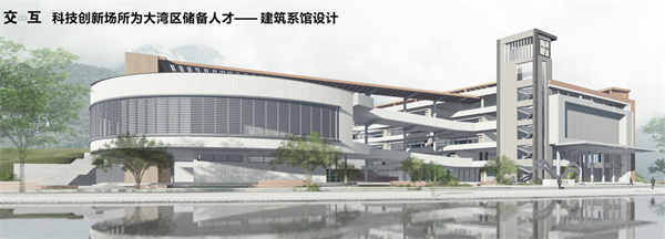 作品《交·互 科技创新场所为大湾区储备人才——建筑系馆设计》作为校园设计,在空间上加强人与人之间的文化交流,促进人与建筑、人与自然之间的和谐对话,体现大湾区建设的人文交流,并在建筑空间上加强交流沟通,从而促进文化繁发展。