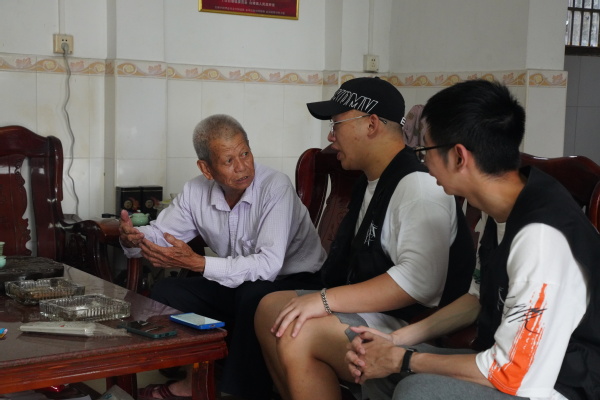 黄氏勖斋文化理事会会长黄财盛先生与实践团成员交流家族文化(曾予霏 摄)