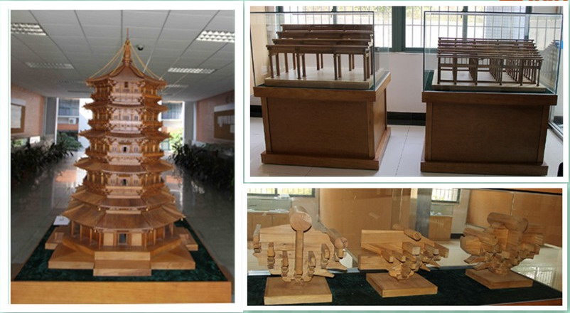 A10一楼展厅摆放的应县木塔,斗拱等模型